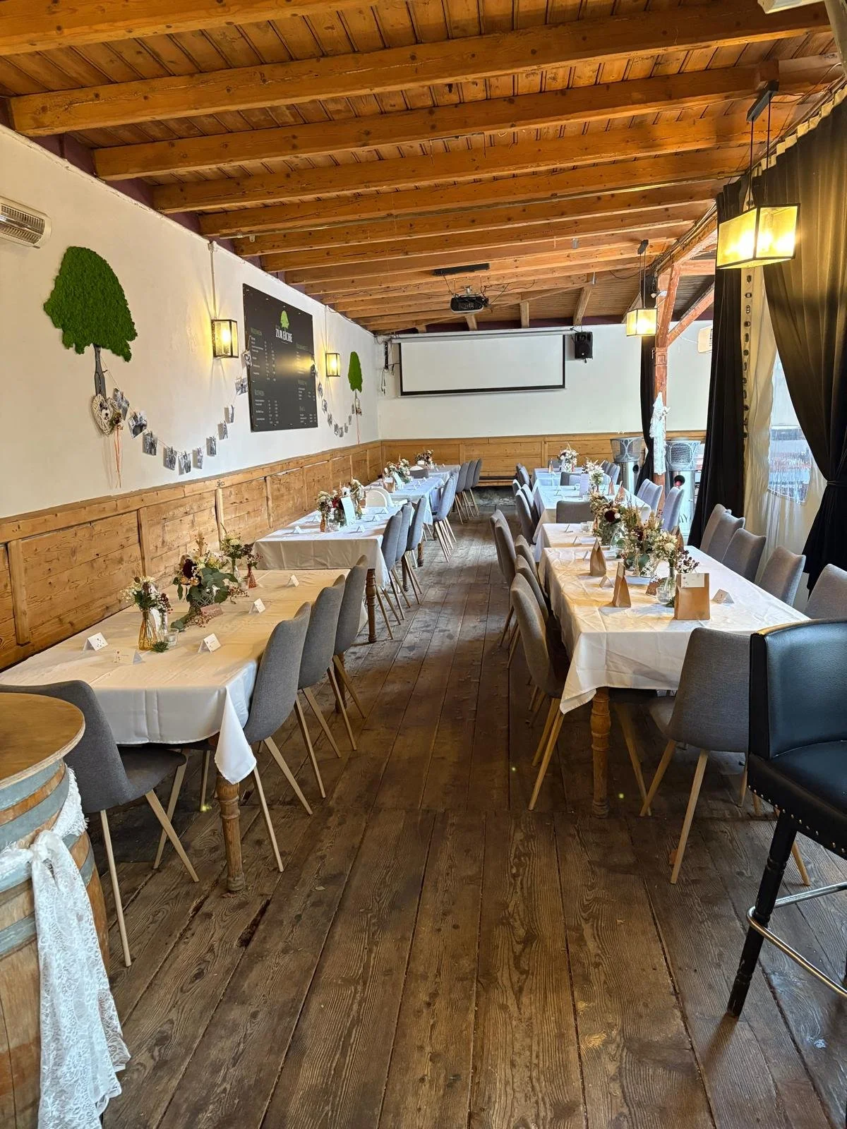 Your party will start at the wine barrels near the entrance with aperol/hugo/prosecco / after we move forward to the lounges or take the seats under the covered area outside!