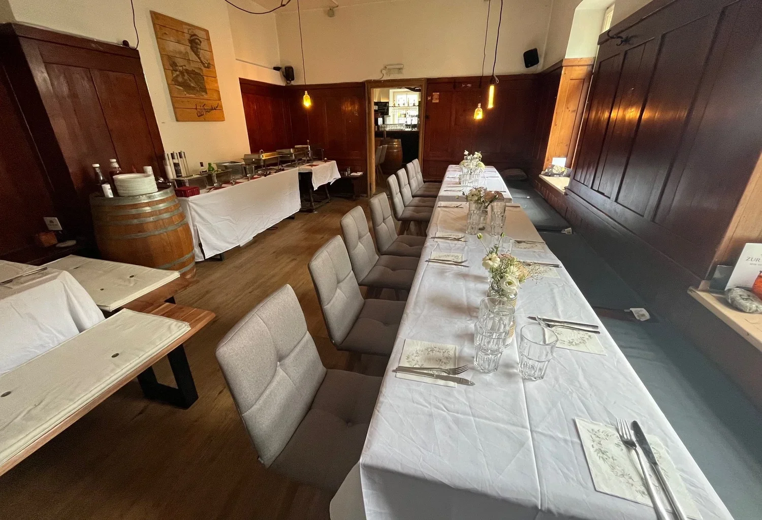 For special Events with at least 50 Guests we can reserve the whole pergula and the inside area after we change inside for you!